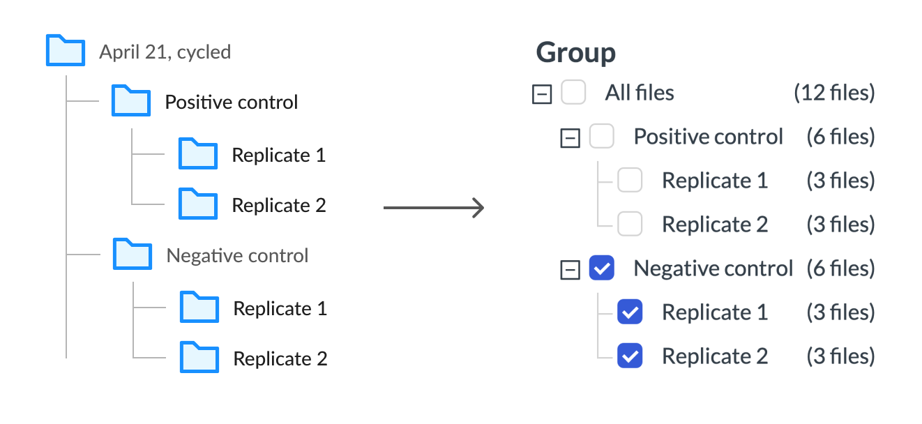When you create hierarchies of experimental in Biodock and run that folder, we save those hierarchies and make them comparison groups in your results, allowing you to easily compare experiments against each other with a single click