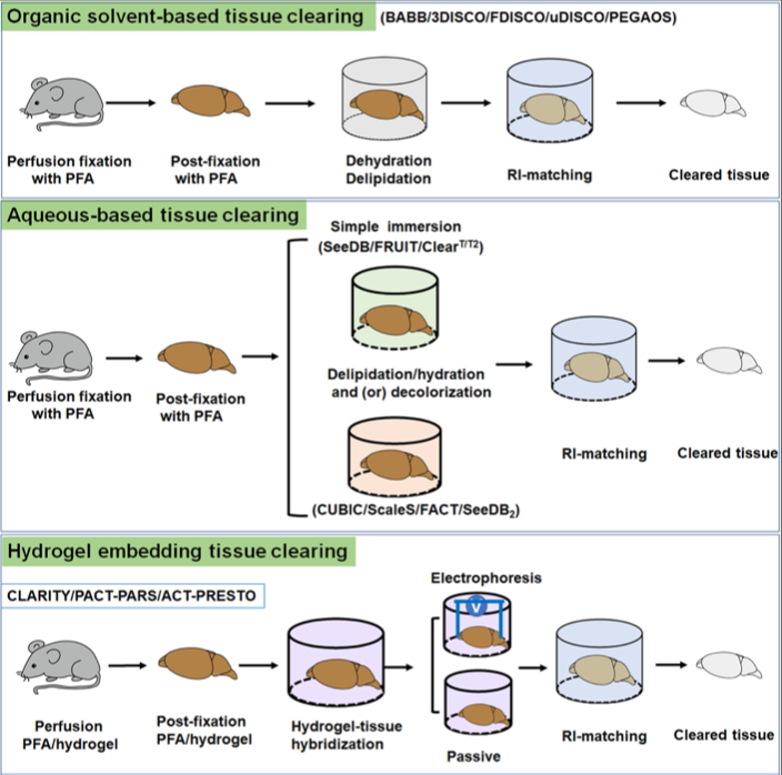 The following are the general steps for carrying out tissue clearing: